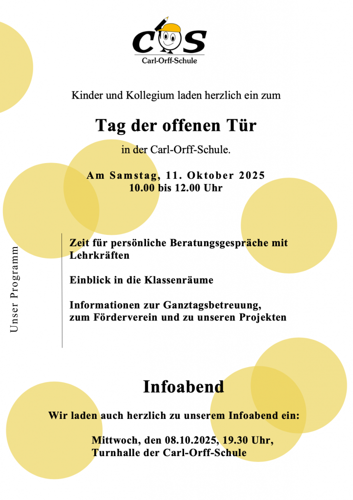 Am 08.11.24 fand der „Tag der offenen Tür“ an der Carl-Orff-Schule statt. Wir haben uns über die zahlreichen Besucher und …